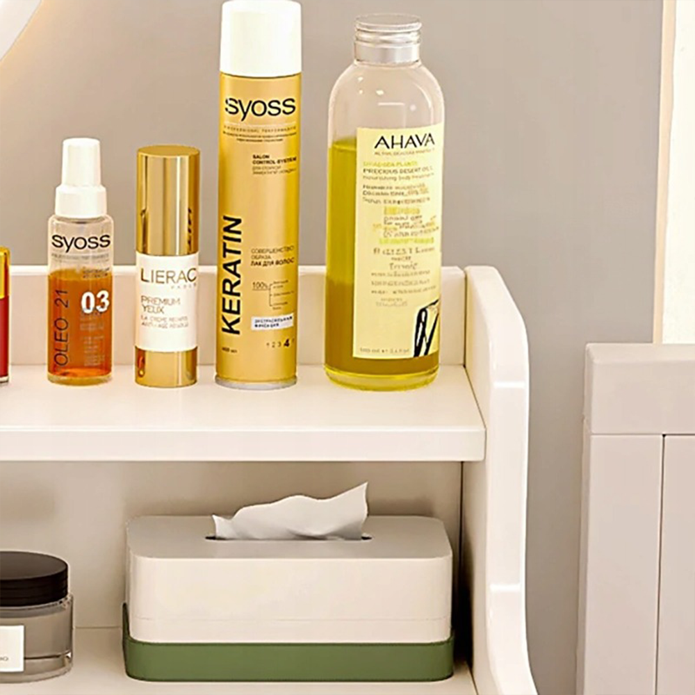 - Pojemna szuflada – doskonała na kosmetyki, szczotki, biżuterię i inne akcesoria