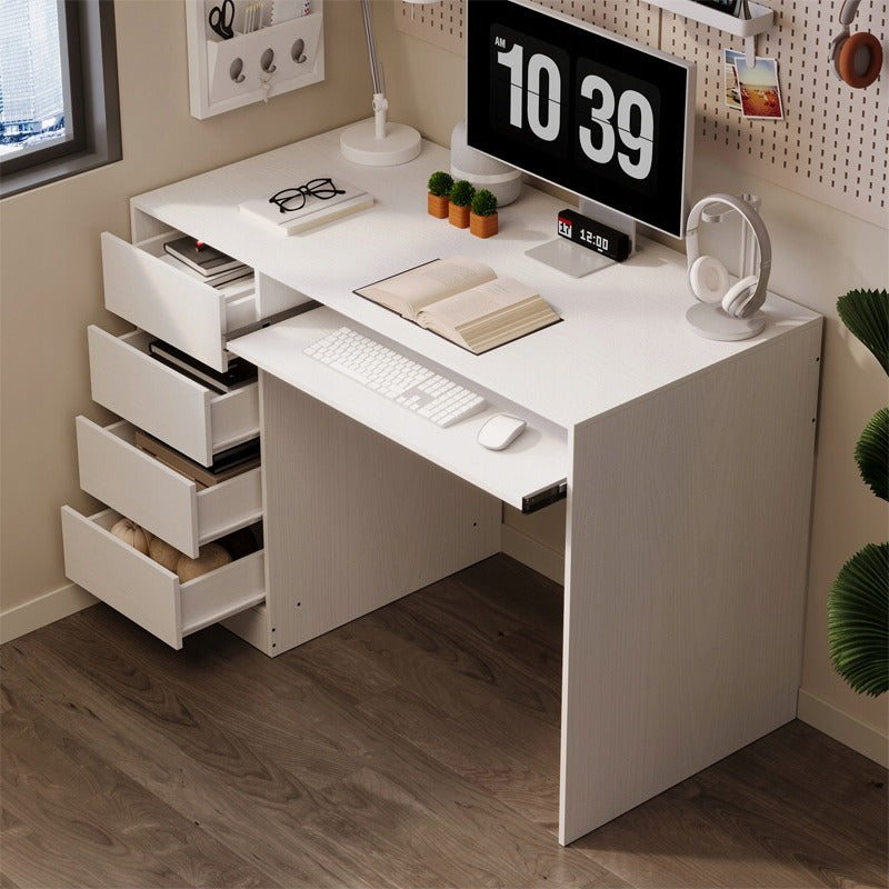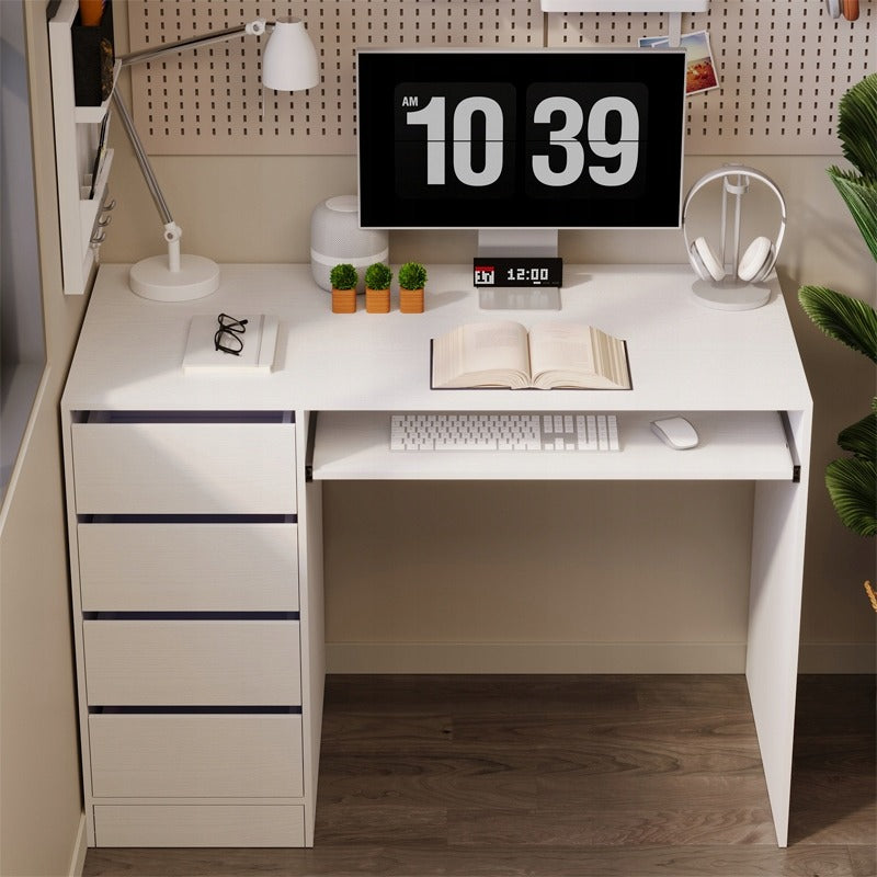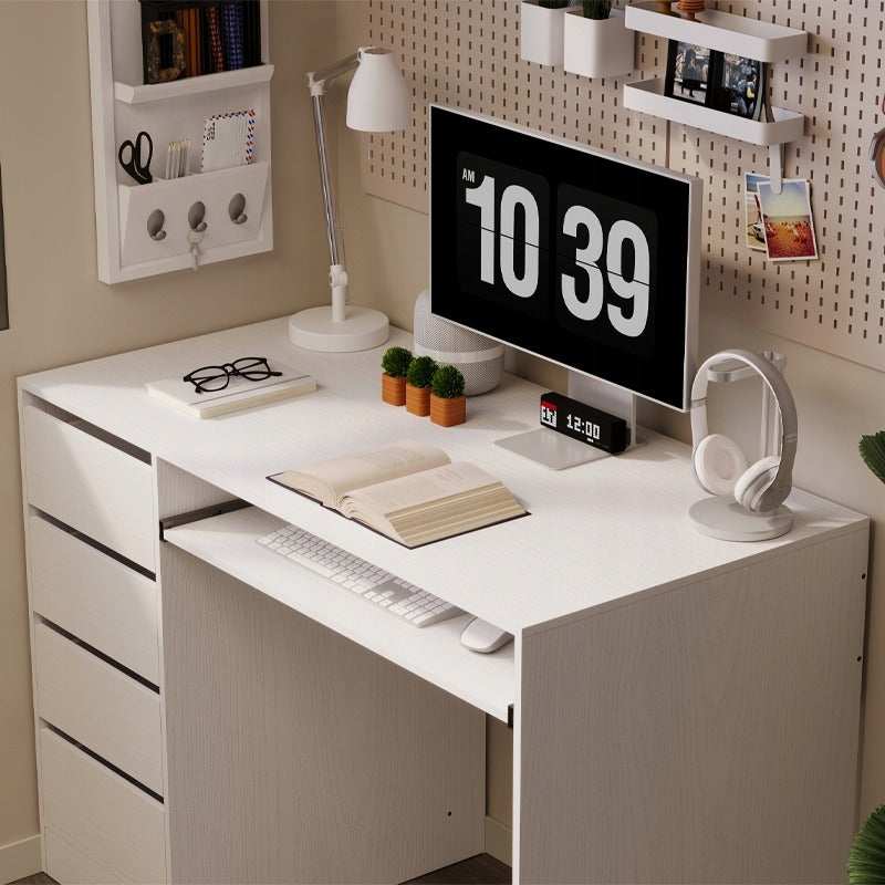 Biurko komputerowe białe – nowoczesne, z szufladami I półką, młodzieżowe