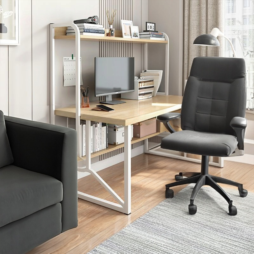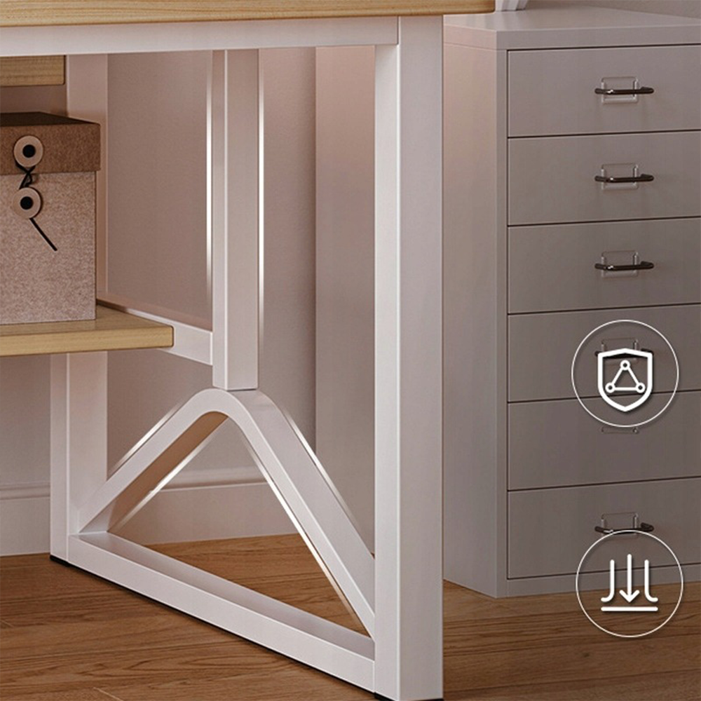 Dodatkowe półki umieszczone nad powierzchnią roboczą zwiększają funkcjonalność – idealne na książki, segregatory, dokumenty, dekoracje czy drobne akcesoria, które chcesz mieć zawsze pod ręką.