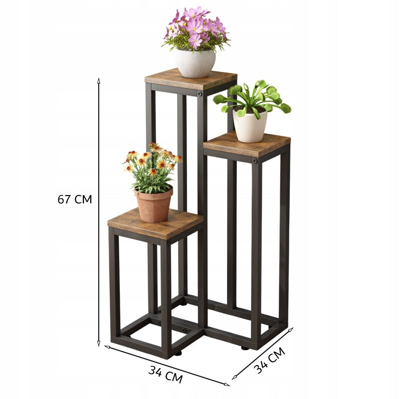 Wprowadź odrobinę stylu i porządku do swojego wnętrza dzięki eleganckiemu stojakowi na kwiaty z 3 poziomami. Ten metalowy stojak na rośliny doskonale łączy funkcjonalność z rustykalną estetyką, stanowiąc idealne miejsce do ekspozycji doniczek, kwiatów i dekoracji.