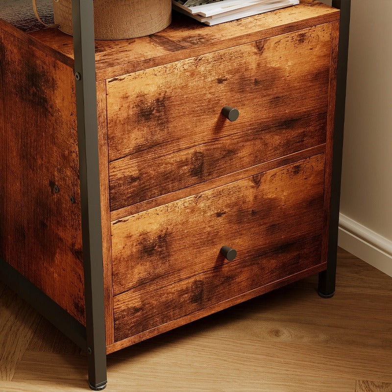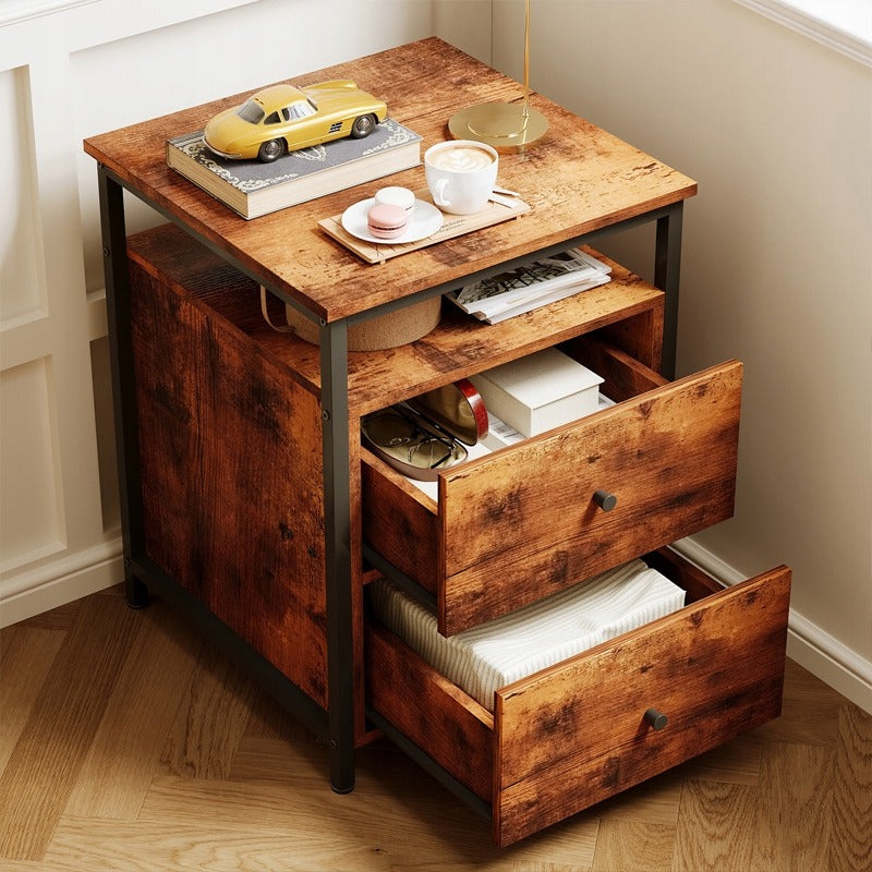 Stylowa I funkcjonalna szafka nocna w stylu loft łączy praktyczne szuflady z eleganckim, rustykalnym wykończeniem. Doskonale sprawdzi się jako stolik nocny do sypialni lub pomocniczy stolik do salonu, zapewniając wygodne miejsce do przechowywania I ekspozycji.