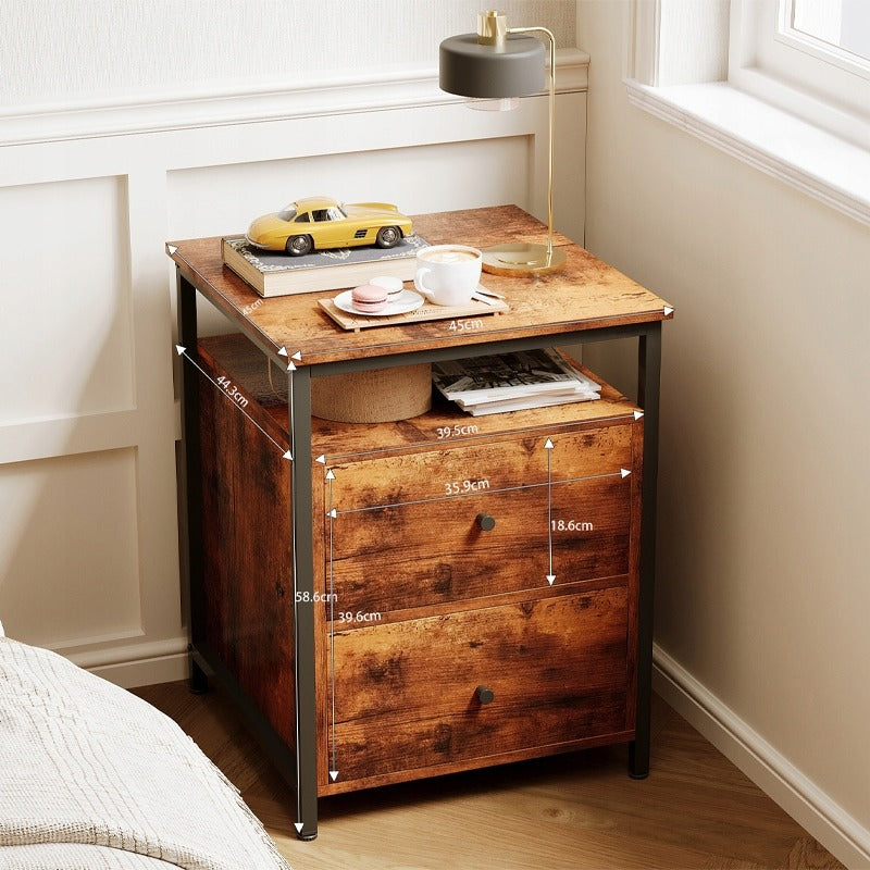 Szafka nocna / stolik do sypialni I salonu – loft, brąz rustykalny retro