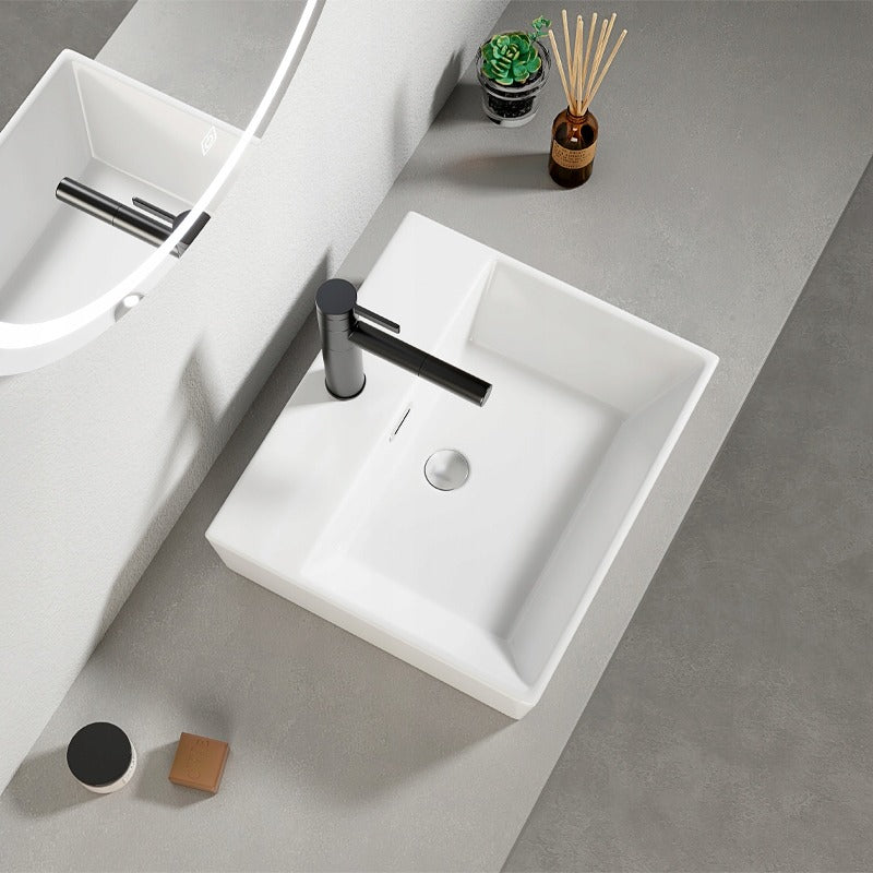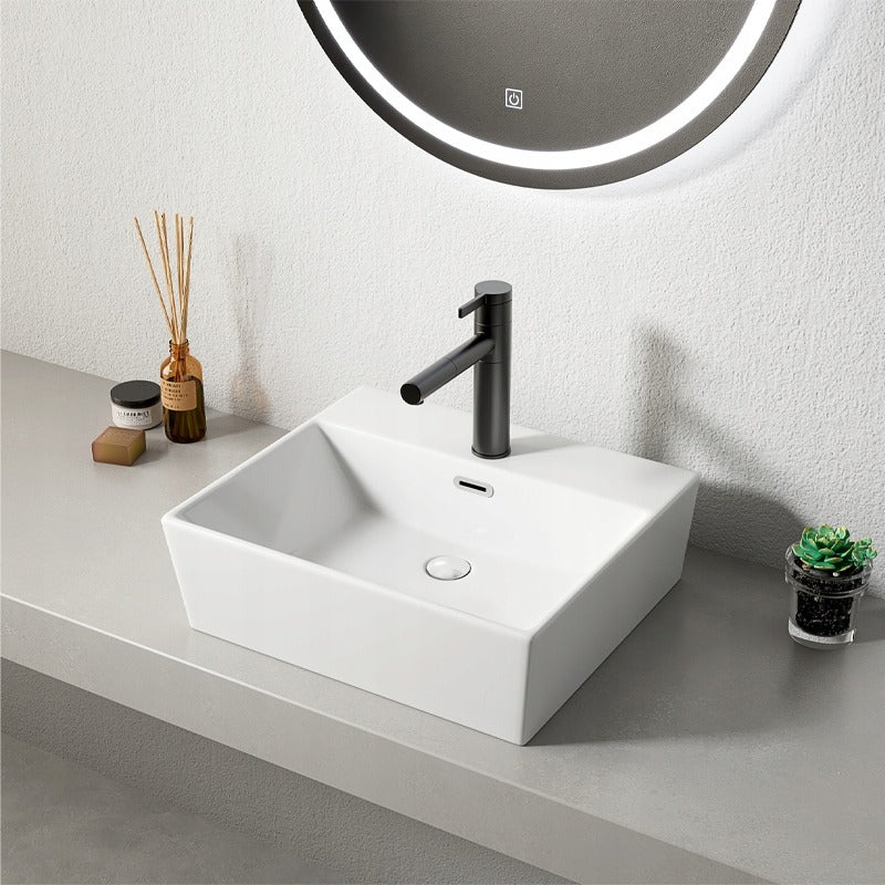 Umywalka ceramiczna stawiana biała nablatowa prostokątna duża 41 x 36 cm