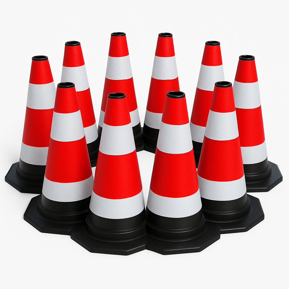 Prawidłowe użytkowanie: pachołek drogowy służy wyłącznie do oznaczania tymczasowych stref roboczych, wydzielania obszarów lub ostrzegania kierowców. Nie nadaje się do zatrzymywania poruszających się pojazdów ani do bezpośredniego kontaktu z nimi. Widoczność: Upewnij się, że pasy odblaskowe są czyste i dobrze widoczne. Kurz, błoto lub śnieg mogą zmniejszyć ich skuteczność przy słabym oświetleniu. Stabilność: W takich warunkach zaleca się stosowanie modeli z cięższą podstawą lub umieszczenie dodatkowego obciążenia u podstawy pachołka. Niebezpieczne rozmieszczenie: Nie umieszczaj pachołków w ciemnych, słabo oświetlonych miejscach, na środku jezdni ani na pochyłych powierzchniach, ponieważ może to stwarzać zagrożenie dla kierowców i pieszych. Kolizje z pojazdami: Nie pozostawiaj pachołków bez nadzoru w zatłoczonych miejscach. Trzymać z dala od dzieci: Nie należy udostępniać tego produktu dzieciom. Długotrwała ekspozycja: Długotrwałe wystawienie na promieniowanie UV lub ekstremalne temperatury może powodować blaknięcie koloru lub pękanie. Regularnie sprawdzaj stan pachołków. Utylizacja ekologiczna: Gdy nie są już używane, pachołki należy utylizować zgodnie z lokalnymi przepisami dotyczącymi recyklingu tworzyw sztucznych.