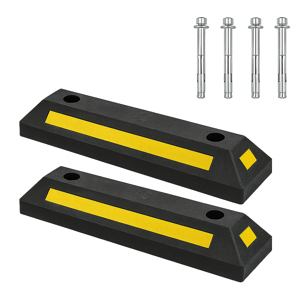 Produkt należy zamontować na równej i stabilnej powierzchni, używając odpowiednich elementów mocujących (np. śrub montażowych). Nieprawidłowy montaż może spowodować przesunięcie produktu oraz uszkodzenie pojazdów. Separator miejsc parkingowych służy wyłącznie do wyznaczania miejsc parkingowych i zatrzymywania kół przy niskiej prędkości; nie jest przeznaczony do absorbowania silnych uderzeń ani do niewłaściwego użytkowania. Po deszczu lub podczas mroźnej pogody powierzchnia gumy może stać się śliska, dlatego zaleca się zachowanie szczególnej ostrożności w pobliżu urządzenia. Ważne jest, aby taśma odblaskowa była zawsze czysta i dobrze widoczna; zaleca się regularne przecieranie powierzchni wilgotną szmatką, unikając środków czyszczących o właściwościach ściernych. Elementy mocujące oraz ogólny stan produktu należy regularnie kontrolować. W przypadku widocznych uszkodzeń separator należy wymienić, aby zapewnić bezpieczeństwo. Choć produkt jest odporny na warunki atmosferyczne, długotrwałe narażenie na ekstremalne temperatury może z czasem powodować odkształcenia lub blaknięcie. Nieużywany lub uszkodzony produkt należy utylizować zgodnie z lokalnymi przepisami dotyczącymi recyklingu odpadów gumowych.